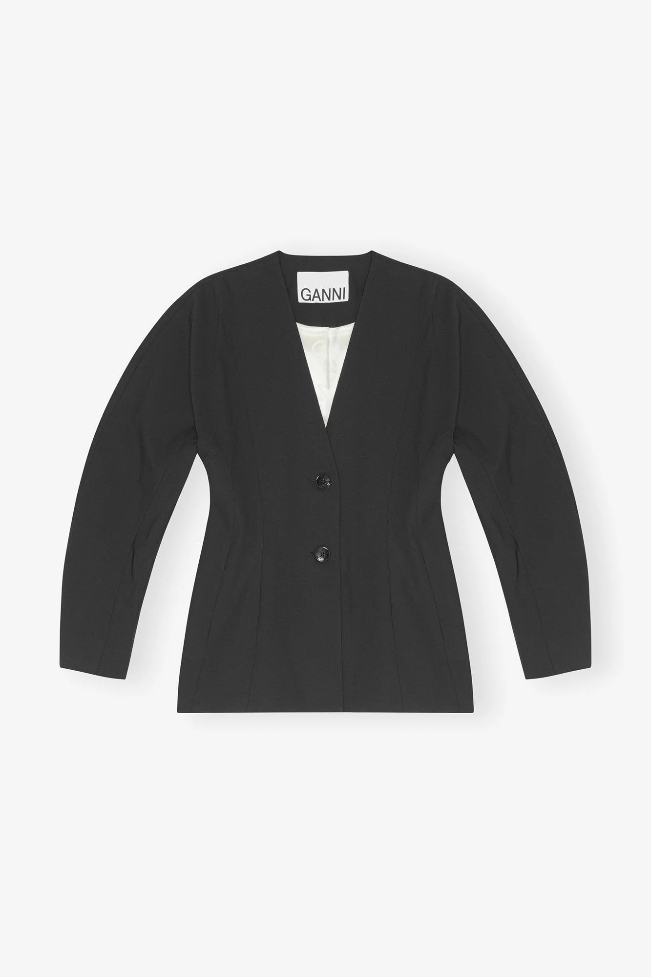 BLACK FITTED DRAPEY MELANGE BLAZER