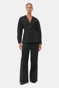 This Black Fitted Drapey Melange Blazer is made from a blend of LENZING™ ECOVERO™ viscose. The blazer is designed for a regular fit and features a V-neckline, button closure and shaped sleeves. DETAILS - 48% LENZING™ ECOVERO™ viscose, 44% recycled polyester, 5% elastane, 3% polyester. Learn more about our materials - Lining composition: 100% Polyester - V-neckline - Button closure - Shaped sleeves Made in: Turkey Product ID: F8339 SIZE & FIT - Designed for a regular fit with a slightly defined waist - Fits true to size, take your normal size - Mediumweight, soft fabric - Patricia is 5’8” and wears a size US 4