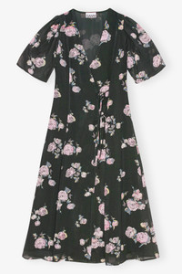 This Black Floral Crepe Wrap Midi Dress features a V-neckline and short sleeves. The dress is a wrap-style with a tie detail at the side. DETAILS - 70% viscose, 30% CIRCULOSE® viscose . Learn more about our materials - Lining composition: 100% Recycled Polyester - V-neckline - Short sleeves - Ties at the side Made in: China Product ID: F9504 SIZE & FIT - Designed for a regular fit - Ariunzul is 5’9” and wears a size US 4
