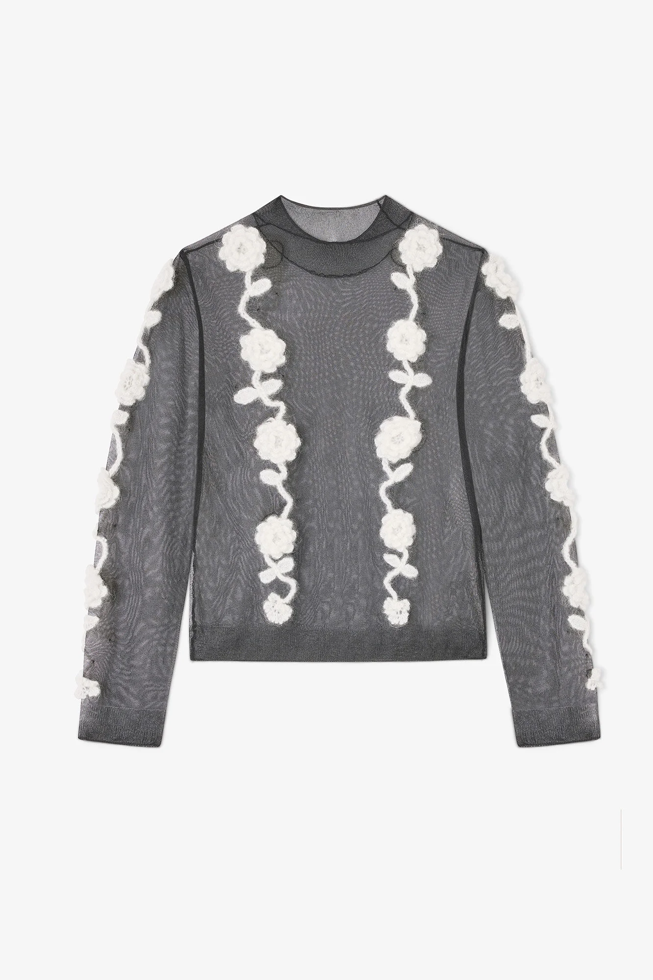 This turtleneck features a high collar and flower crochet detailing. DETAILS - 56% recycled polyamide, 28% mohair, 8% wool, 8% polyester. Learn more about our materials - High collar - Long sleeves - Flower crochet detailing Made in: China Product ID: K2649 SIZE & FIT - Regular fit - Ayesha is 5’9” and wears a size S - For personalised guidance on sizing and fit, contact our Customer Service team - here - .