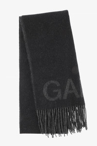 This Black Fringed Scarf features fringed edges and a GANNI logo. DETAILS - 90% recycled wool, 10% wool. Learn more about our materials - Lining composition: 90% Recycled Wool 10% Wool - Fringed edges - GANNI logo Made in: Italy Product ID: A3905 SIZE & FIT - Height: 230 - Width: 49 - Depth: 0.5