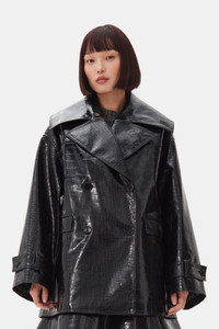 This Black Future Coated Midi Jacket features a double-breasted button closure, adjustable cuffs and front pockets. DETAILS - 64% polyurethane fibre, 24% recycled polyester, 7% cotton, 5% viscose. Learn more about our materials - Lining composition: 100% Recycled Polyester - Adjustable cuffs - Double-breasted button closure - Front pockets - Matching belt Made in: Turkey Product ID: F9463 SIZE & FIT - Designed for a relaxed fit - Ariunzul is 5’9” and wears a size US 4