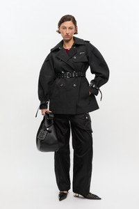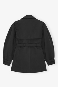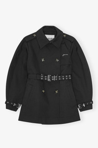 This trench coat features a double-breasted design with button details, a belted waist, epaulettes on the shoulders and buckle details at the cuff. DETAILS - 100% recycled polyester. Learn more about our materials - Classic collar - Double-breasted with button details - Belted waist for adjustable fit - Epaulettes on shoulders - Embroidered GANNI logo - Buckle detail at the cuffs Made in: China Product ID: W0893 SIZE & FIT - Regular fit - Amber is 5’11” and wears a size US 4
