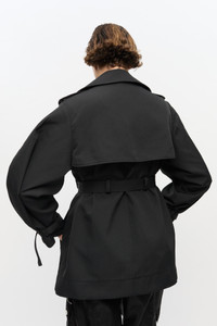 BLACK HEAVY TWILL MIDI TRENCH COAT