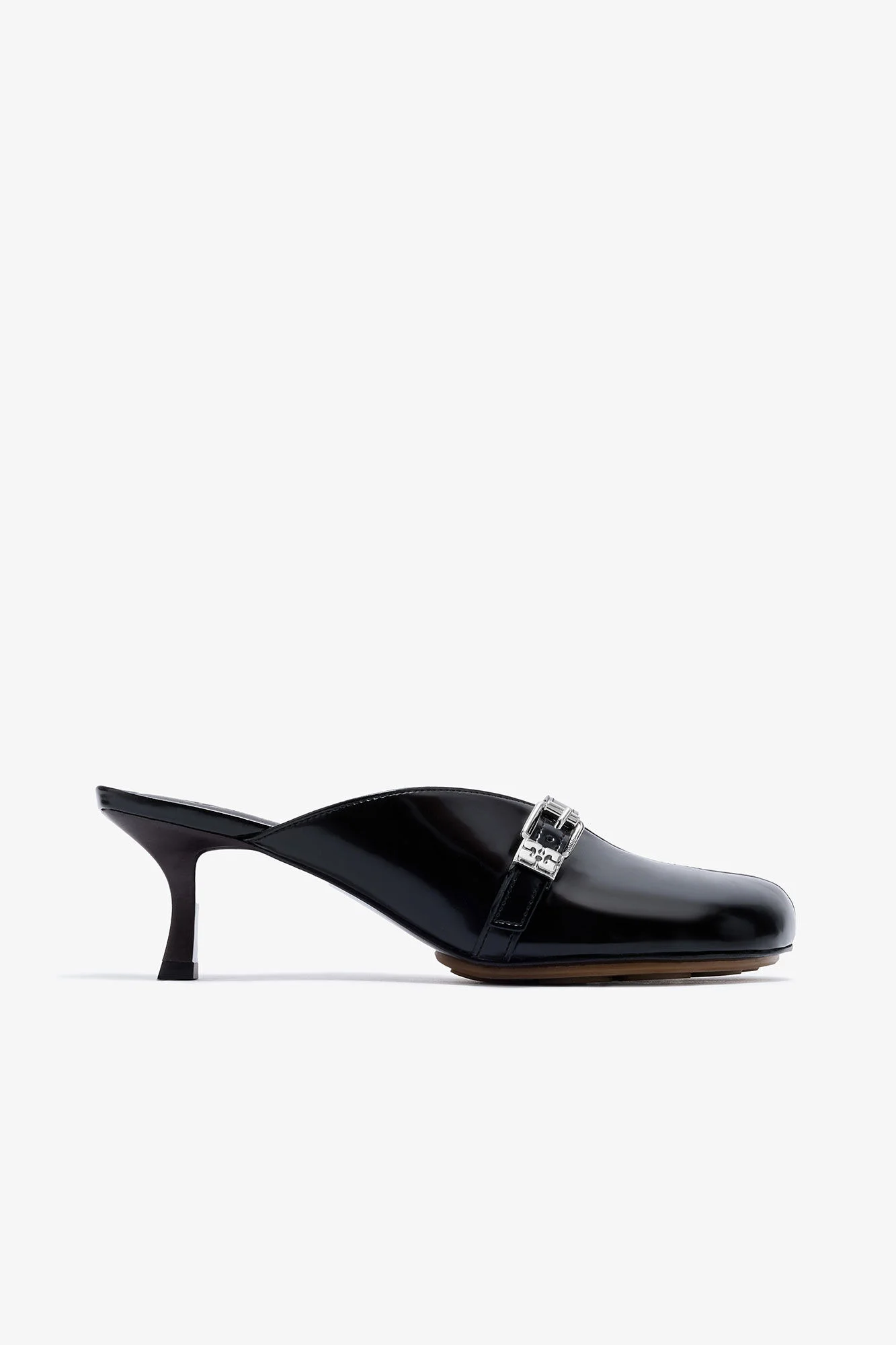 These heels feature a mule style design, rounded toe, v-shaped instep and a buckle strap detail with a GANNI Butterfly logo. DETAILS - 100% Oleatex™ (50% biobased polyurethane, 50% recycled polyester). Learn more about our materials - Mule style - Rounded toe - V-shaped instep - Buckle strap detail - Silver-tone GANNI Butterfly logo This style contains Oleatex™, an innovative alternative to synthetic materials, crafted using byproducts of olive oil production to form a bio-based polyurethane (PU) top coating bonded to a cotton or viscose backing. Oleatex™ is part of GANNI’s Fabrics of the Future, a programme set up in 2019 by GANNI to research, test and eventually scale innovative materials that challenge conventional material methods, paving the way for the future of fashion. Made in: Brazil Product ID: S3216 SIZE & FIT - For personalised guidance on sizing and fit, contact our Customer Service team - here - .