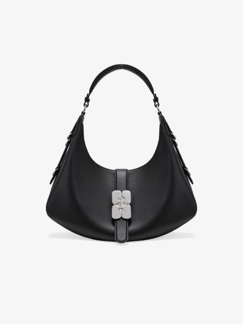 This bag features a accordian-style silhouette, a shoulder strap and D-ring detailing at the side. The bag has a tab closure with the signature GANNI Butterfly clasp in silver-tone, 1 main compartment, an inside open pocket and 1 removable zip pouch. DETAILS - 65% recycled leather, 19% polyurethane fibre, 16% polyester. Learn more about our materials - Lining composition: 85% Recycled Polyester 15% Polyester - Accordion-style silhouette - Shoulder strap - Silver-tone GANNI Butterfly logo - D-rings detailing - One compartment - Inside open pocket - 1 removable zip pouch Made in: China Product ID: A7297 SIZE & FIT - Strap length: 29.5 cm - Height: 29.5 cm - Width: 44.5 cm - Depth: 12 cm - Designed to hold an iPhone 16 Pro Max, wallet, sunglasses, keys, water bottle, pouch, gym clothes, 15” laptop - For personalised guidance on sizing and fit, contact our Customer Service team - here - .