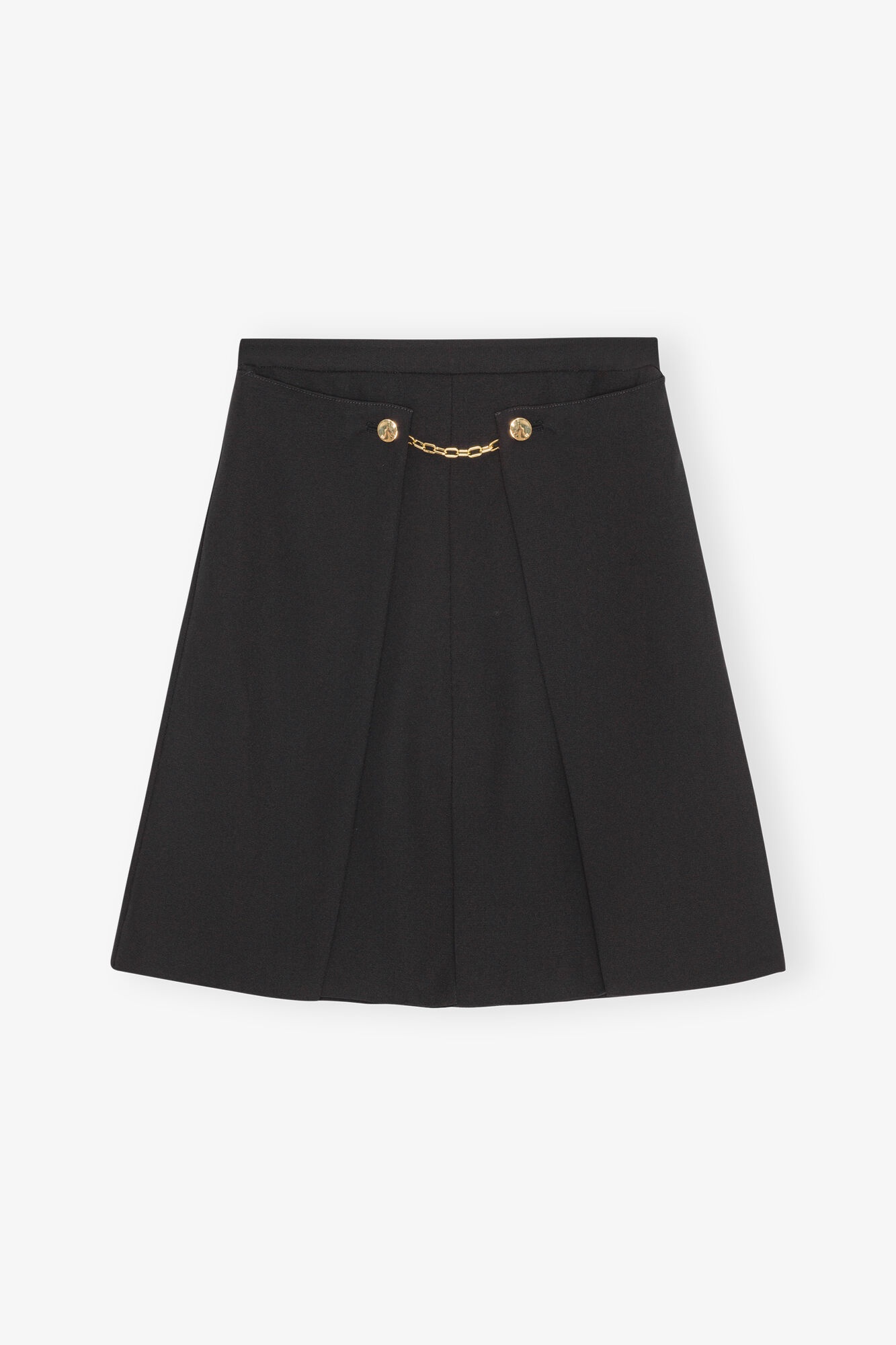 This Black Light Twill Suiting Skirt features front pleats, a slit, gold-tone buttons, and a decorative chain detail at the waistband. DETAILS - 100% recycled polyester. Learn more about our materials - Lining composition: 100% Recycled Polyamide Made in: China Product ID: W0184 SIZE & FIT - Regular fit - Zoey is 5’10” and wears a size S