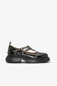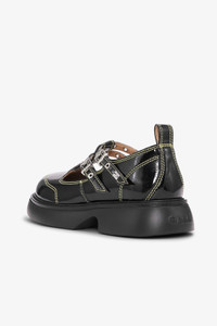 These Black Mary Jane Shoes feature a chunky sole, adjustable straps, silver-toned buckles, and contrast stitching. DETAILS - 56% polyurethane, 44% recycled cotton. Learn more about our materials - Rounded toe - Pull tabs - Adjustable buckle straps - Two silver-tone buckles with eyelets Made in: Portugal Product ID: S2928