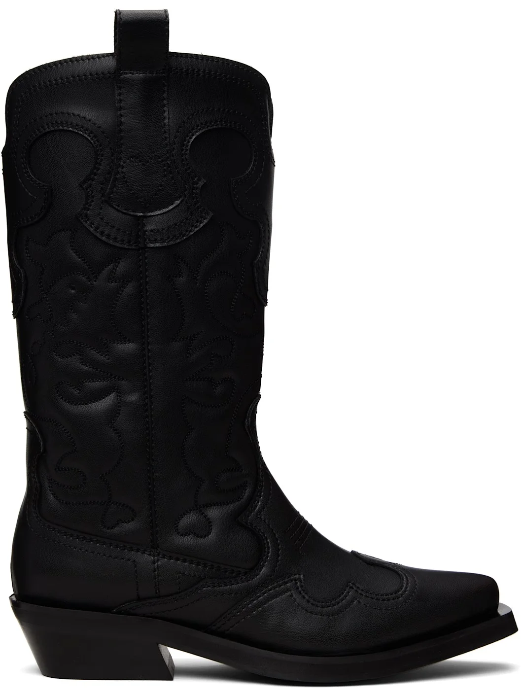 Black Mid Shaft Embroidered Western Boots