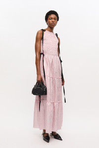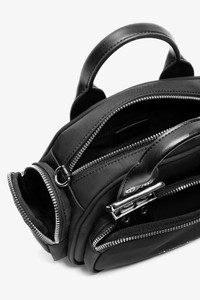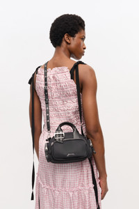 This bag features a top handle and an adjustable shoulder strap with metallic hardware. It has a zip closure, one front pocket, 2 side pockets and a silver-tone GANNI logo. DETAILS - 100% recycled nylon. Learn more about our materials - Lining composition: 100% Recycled Polyester - 100% recycled nylon - Silver-tone GANNI logo - Top handle - Adjustable and removable shoulder strap - Zip closure - 3 pockets - Silver-tone hardware - Buckle and strap detail Made in: China Product ID: A6738 SIZE & FIT - Strap length: 47 cm - Height: 16.5 cm - Width: 19 cm - Depth: 8 cm - For personalised guidance on sizing and fit, contact our Customer Service team - here - .