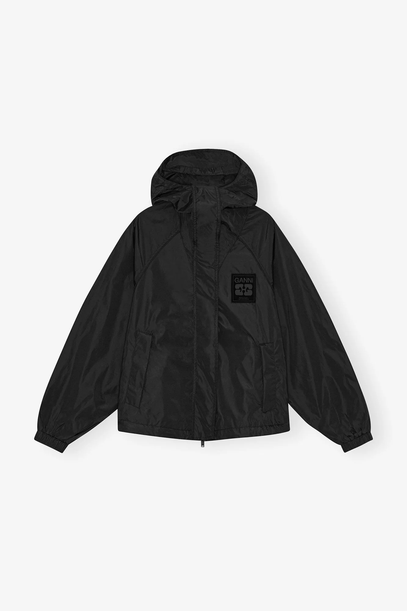 This jacket features a hood and a front zipper closure. The jacket has a patch with a GANNI logo on the chest. DETAILS - 100% recycled nylon. Learn more about our materials - Lining composition: 100% Recycled Nylon - Front zipper closure - Hooded design - Side pockets - GANNI logo patch on chest Made in: China Product ID: W0736 SIZE & FIT - Oversized fit - Chen is 5’10” and wears a size S/M - For personalised guidance on sizing and fit, contact our Customer Service team - here - .