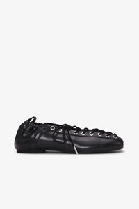 BLACK OLEATEX EYELETS LACE UP BALLERINAS