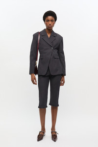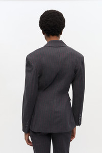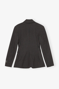 This blazer features a thin red pinstripe, a single-button closure at the front, notched lapels, two flap pockets at the waist and a GANNI patch logo. DETAILS - 62% recycled polyester, 32% viscose, 6% elastane. Learn more about our materials - Lining composition: 57% Acetate 43% Viscose (Sleeve) + 100% Cotton (Back) - Red pinstripe - Single-button front closure - Lapels - Two flap pockets - GANNI logo patch on the sleeve Made in: Turkey Product ID: W0578 SIZE & FIT - Regular fit - Kathia is 5’10” and wears a size US 4