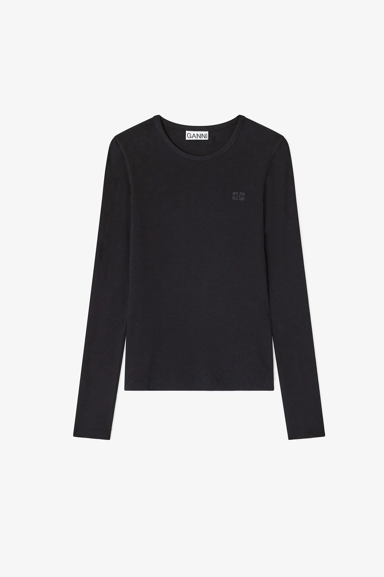 This top features a round neck, long sleeves and a GANNI logo. DETAILS - 95% organic cotton, 5% elastane. Learn more about our materials - Round neck - Long sleeves - GANNI logo Made in: Portugal Product ID: T4313 SIZE & FIT - Slim fit - Lena is 5’9” and wears a size S - For personalised guidance on sizing and fit, contact our Customer Service team - here - .