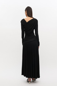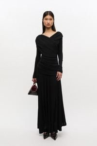 This dress features an asymmetrical neckline, long sleeves and draped ruching along the bodice. DETAILS - 100% viscose. Learn more about our materials - Asymmetrical neckline - Long sleeves - Ruching along the bodice Made in: Turkey Product ID: T4213 SIZE & FIT - Long length - Slim fit - Chen is 5’10” and wears a size US 4 - For personalised guidance on sizing and fit, contact our Customer Service team - here - .