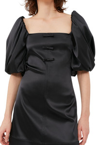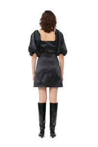 This Black Satin Mini Dress is made from recycled polyester and elastane. The dress is designed for a slim fit and features a square neckline, short puff sleeves, decorative bow details at the front and a zip closure. DETAILS - 91% recycled polyester, 9% elastane - Square neckline - Short puff sleeves - Decorative bow details at the front - Zip closure Made in: China Product ID: F8456 SIZE & FIT - Designed for a slim fit throughout, skimming the body without clinging - Fits true to size, take your normal size - Mediumweight, soft fabric - Beatriz is 5’9” and wears a size US 4
