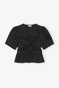 BLACK WASHED STRETCH COTTON TIE STRAP BLOUSE