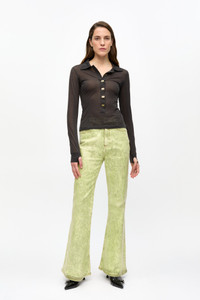 BLACK SHEER MESH JERSEY BUTTONED TOP