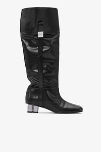 These boots feature a slouchy silhouette with a Butterfly logo buckle and strap detail and a GANNI Butterfly logo mini heel with a black finish. DETAILS - 100% Oleatex™ (64% biobased polyurethane, 24% recycled polyester, 7% cotton, 5% viscose). Learn more about our materials - Slouchy silhouette - GANNI logo buckle and strap - Black finish Butterfly heel Made in: Portugal Product ID: S3113 SIZE & FIT - 3.5 heel - For personalised guidance on sizing and fit, contact our Customer Service team - here - .