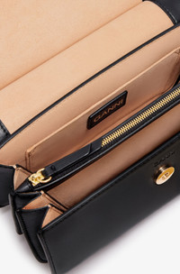 This Small Apo-G Bag comes in a black colour with a glossy finish. Crafted from recycled leather, the Apo-G features a magnetic closure with a GANNI Butterfly gold-tone clasp and a detachable strap, allowing for versatile wear as a shoulder bag or clutch. The compact interior has a slip pocket and three main compartments, one of which has a zip closure. DETAILS - 65% recycled leather, 19% polyurethane fibre, 16% polyester. Learn more about our materials - Adjustable and removable shoulder strap - GANNI Butterfly gold-tone clasp - Magnetic closure - Three main compartments, one equipped with a zip closure - Slip pocket Made in: China Product ID: A6449