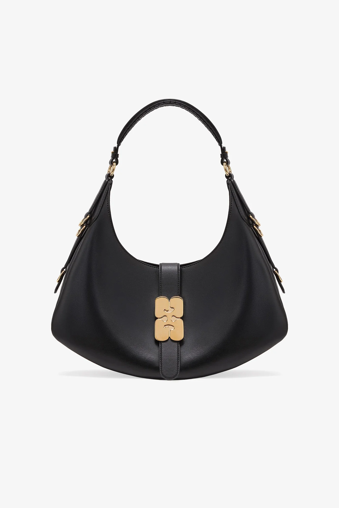 This bag features a accordian-style silhouette, a shoulder strap and D-ring detailing at the side. The bag has a closure tab with the signature GANNI Butterfly clasp in gold-tone, 1 main compartment and an inside open pocket. DETAILS - 65% recycled leather, 19% polyurethane fibre, 16% polyester. Learn more about our materials - Lining composition: 85% Recycled Polyester 15% Polyester - Accordion-style silhouette - Shoulder strap - Gold-tone GANNI Butterfly logo - D-rings detailing - One compartment - Inside open pocket Made in: China Product ID: A6998 SIZE & FIT - Strap length: 27 cm - Height: 19 cm - Width: 37 cm - Depth: 9 cm - Designed to hold an iPhone 16 Pro Max, wallet, sunglasses, keys, water bottle, tablet or pouch - For personalised guidance on sizing and fit, contact our Customer Service team - here - .