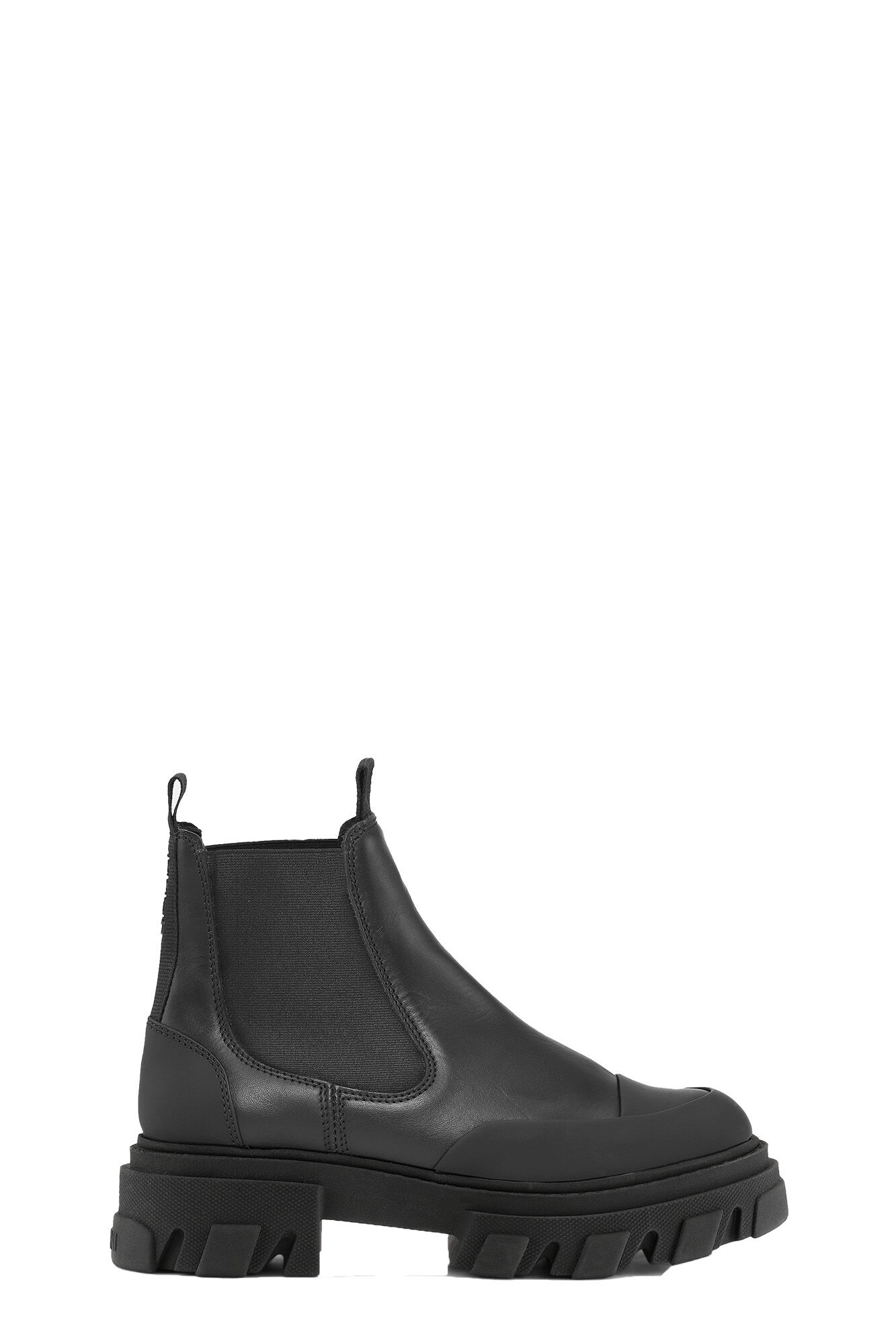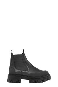These Low Chelsea Boots feature elastic panels, toe cap details, pull tabs, chunky cleated soles and a subtle GANNI logo. DETAILS - 100% calf leather. Learn more about our materials - Lining composition: 100% calf leather - Shaft: 130 - Sole height: 50 - Shaft: 13cm - Heel height: 5cm - Elastic panels - Toe cap details - Pull tabs - Chunky cleated soles - GANNI logo Made in: Portugal Product ID: S1908 SIZE & FIT - Designed to be ankle length - Consider taking a larger size for a more comfortable fit - Pull-on style - Smooth, matte leather