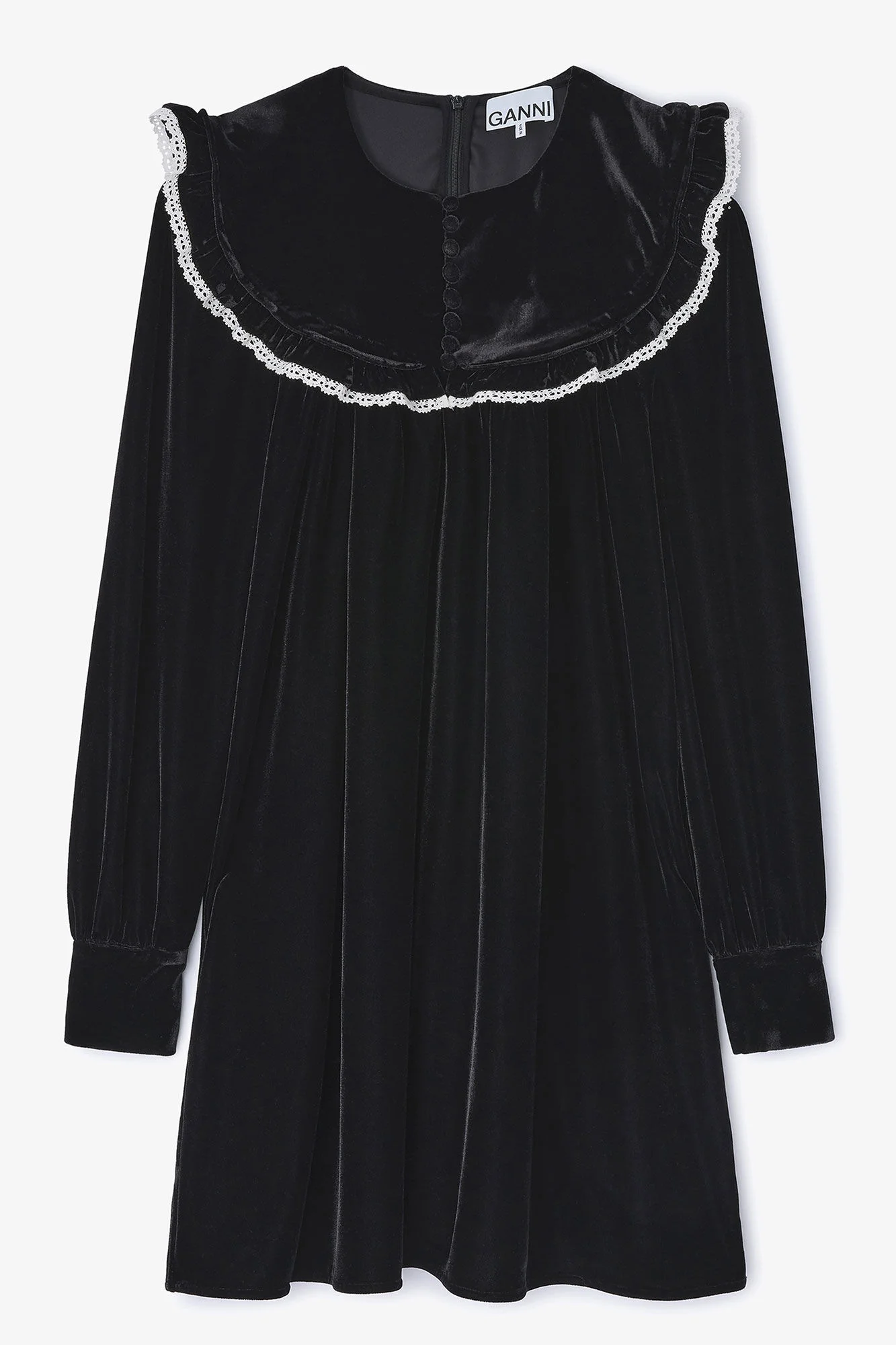 This dress features a circle collar with a button-opening, a zipper closure and lace detailing. DETAILS - 94% Recycled Polyester, 6% Elastane Learn more about our materials - Circle collar - Button-opening - Long sleeves - Cuffs - Zipper closure - Lace edge detailing Made in: China Product ID: A1030110 SIZE & FIT - Regular fit - Mini - Yaniris is 5’11” and wears a size US 4
