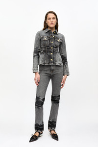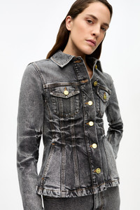 Revealed on the Spring/Summer 2025 runway Crafted from an organic cotton blend, the Black Washed Future Denim Blazer brings a new touch to the classic denim jacket with its corset-inspired shape and heavy whiskers. Made with a hint of stretch, this denim blazer features a collar, a full button closure, patch pockets, and a GANNI label on the back. DETAILS - 59% organic cotton, 40% viscose, 1% elastane. Learn more about our materials - Collar - Button closure at the front - Front pockets - Sewn-on GANNI logo patch Made in: Tunisia Product ID: J1693 SIZE & FIT - Denise is 5’9” and wears a size US 4