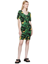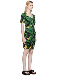 Stretch viscose jersey dress. Graphic pattern printed throughout. · Scoop neck · Ruching at front, back, and side-seams · Elasticized cuffs · Fully lined Supplier color: Black 95% viscose, 5% elastane. Made in Portugal 222144F052019