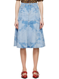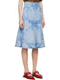 BLUE BLEACH DENIM FLOUNCE MIDI SKIRT