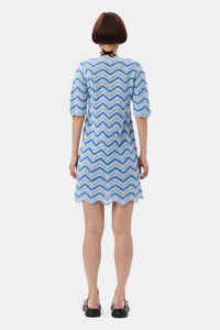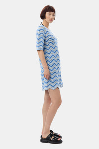 This Blue Cotton Crochet Mini Dress is designed in a regular fit and features a handmade crochet design, a round neckline, short sleeves, wavey detailing and an embroidered GANNI logo at the front. DETAILS - 100% organic cotton. Learn more about our materials - Sheer - Handmade crochet design - Round neckline - Short sleeves - Wavey detailing - Embroidered GANNI logo at the front Made in: China Product ID: K2253 SIZE & FIT - Designed for a close fit over the shoulders, cut straight from the chest - Fits true to size, take your normal size - Lightweight, soft fabric