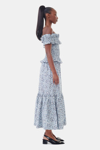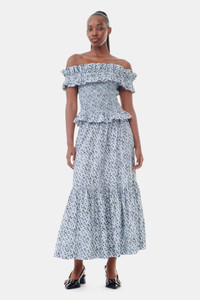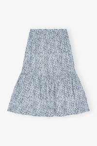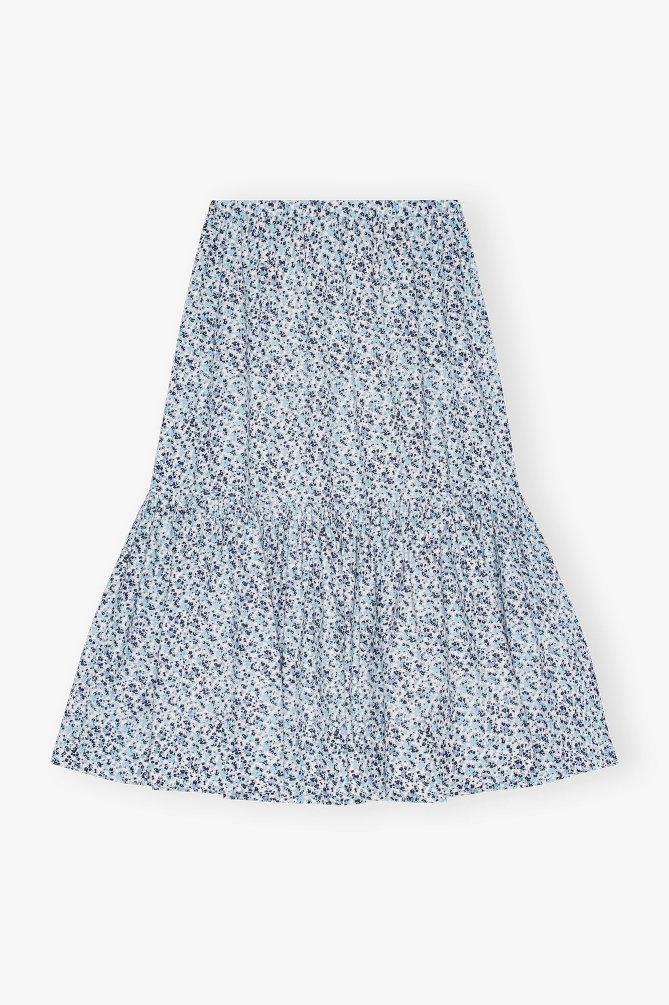 BLUE FLORAL PRINTED COTTON MAXI FLOUNCE SKIRT