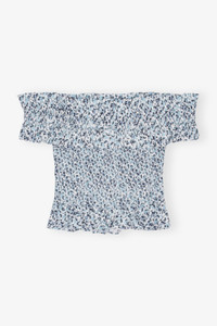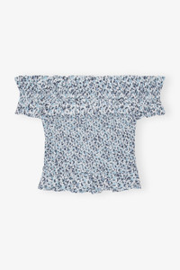 BLUE FLORAL PRINTED COTTON OFF-SHOULDER SMOCK TOP