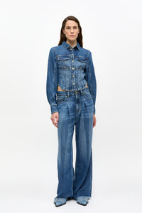 BLUE LIGHT DENIM CORSAGE SHIRT