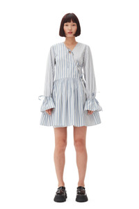 BLUE STRIPE COTTON MINI WRAP DRESS