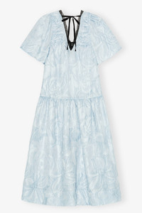 BLUE TEXTURED CLOQUE MIDI DRESS