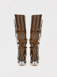 DESCRIPTION - Logo: Ganni Butterfly - Details: With ribbons - Model: Draped - Toe: Round - Shaft: Knee-high - Sole: Rubber - Heel: Low heel - Lining: With logo - Pattern: Plain-colored - Materials: Oleatex DETAILS AND CARE Composition Polyurethane SIZE AND FIT Sizes Heel: 3,5 cm Designer code: S3074 826 Giglio Code: H41990 Designer: Ganni Collection: Ganni Woman Category: Shoes Ganni