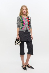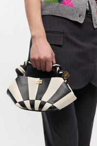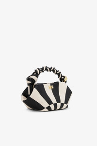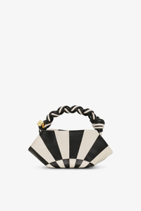 This bag features a hexagonal shape, a braided top handle with a braided knot and an adjustable and removable shoulder strap. The bag has an internal magnetic closure, an embossed logo, one compartments and a flat card pocket. DETAILS - 65% recycled leather, 19% polyurethane fibre, 16% polyester. Learn more about our materials - Lining composition: 65% Recycled Cotton 35% Cotton - Sunburst design in black and white - Hexagonal shape - Braided top handle with a braided knot - Adjustable and removable shoulder strap - Internal magnet closure - Gold-tone metallic dice with a GANNI logo - GANNI embossed logo - One compartments - Flat card pocket Made in: China Product ID: A6708 SIZE & FIT - Strap length: 50 - Height: 11 - Width: 25 - Depth: 11.5