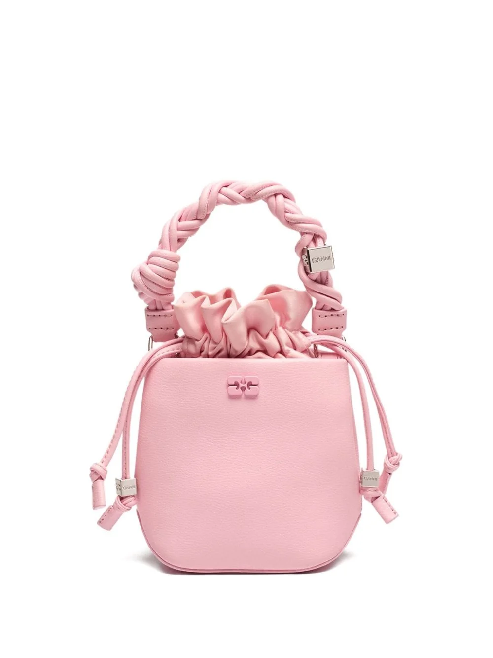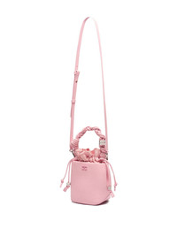 mini Bou bucket bag Highlights - Light pink - Drawstring fastening - Single top handle - Adjustable detachable shoulder strap - Applique logo Imported Composition Outer: Recycled Leather 57%, Polyurethane 22%, TENCEL™ Lyocell (LENZING) 21% Lining: Recycled Polyester 100% SIZE & FIT Measurement DEPTH 3.54 in(9 cm) HEIGHT 5.9 in(15 cm) STRAP 40.55 in(103 cm) WIDTH 3.93 in(10 cm)