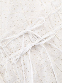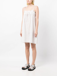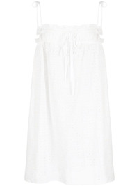 broderie-anglaise cotton minidress Ganni's minidress is cut from cotton using the broderie anglaise needlework technique creating a breezy, delicate look. Tie-fastening straps finish the design. Highlights - White - Cotton - Broderie anglaise - Ruffled detailing - Square neck - Tie-fastening straps - Straight hem Imported Composition Cotton 100% SIZE & FIT Model measurements Height 5 ft 9 in(1.76 m) Bust/Chest 31.1 in(79 cm) Hips 35.03 in(89 cm) Waist 24.4 in(62 cm) Measurement HIPS 44.09 in(112 cm) LENGTH 35.43 in(90 cm) WAIST 37 in(94 cm) FittingInformation Designed for a close fit at the chest with a loose fit over the waist and hips Made from a midweight non-stretch fabric This piece fits true to size – take your usual size Washing instructions Machine Wash