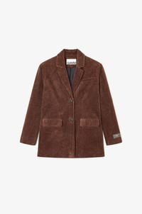This blazer features a collar, button-front closure, 3 pockets and a GANNI logo patch at the sleeve hem. DETAILS - 99% organic cotton, 1% elastane. Learn more about our materials - Collar and lapels - Button-front closure - 3 pockets - GANNI logo patch - Inner pocket Made in: China Product ID: W0769 SIZE & FIT - Oversized fit - Ayesha is 5’9” and wears a size S/M - For personalised guidance on sizing and fit, contact our Customer Service team - here - .