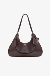 The bag is crafted in recycled leather with a croco finish featuring a mirror hangtag and logo hardware DETAILS - 51% recycled leather, 23% TENCEL™ Lyocell, 26% polyurethane. Learn more about our materials - Lining composition: 65% Recycled Cotton 35% Cotton - Shoulder strap - Zip closure - GANNI Butterfly logo - Gold-tone hardware - Mirror hangtag Made in: China Product ID: A6801 SIZE & FIT - Strap length: 45 cm - Height: 38 cm - Width: 56 cm - Depth: 18 cm - For personalised guidance on sizing and fit, contact our Customer Service team - here - .