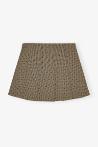 BROWN FLOCK CHECK SUITING MINI SKIRT