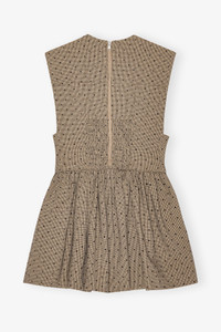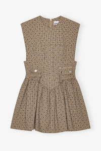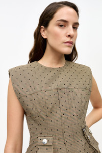 This Brown Flock Suiting Corset Mini Dress is a sleeveless dress with a round neckline, front pockets, a flared skirt, zip closure at the back and a smock back detail. DETAILS - 64% recycled polyester, 34% LENZING™ ECOVERO™ viscose, 2% elastane. Learn more about our materials - Lining composition: 100% viscose - Round neckline - Sleeveless - Zip closure - Front pockets - Smock back - Flared skirt Made in: Turkey Product ID: W0265 SIZE & FIT - Denise is 5’9” and wears a size US 4