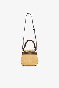 BROWN GANNI BOU BUCKET BAG RAFFIA