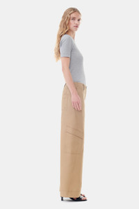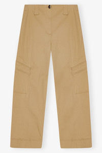 BROWN HERRINGBONE CANVAS MID WAIST PANTS