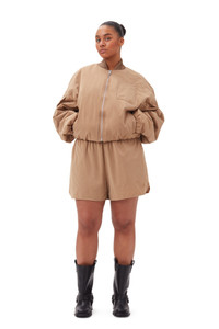 These Brown Light Twill Shorts are designed for a regular fit and feature a high elasticated waist, side pockets and curved side seams. DETAILS - 100% recycled polyester - High elasticated waist - Side pockets - Curved side seams Made in: China Product ID: F8900 SIZE & FIT - Designed for a regular fit with a high waist - Fits true to size, take your normal size - Lightweight twill fabric - Tanja is 5’8” and wears a size US 10/12 - Julie is 5’11” and wears a size US 4