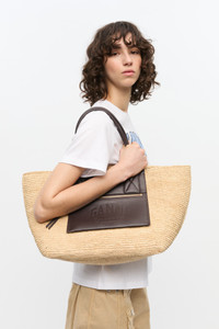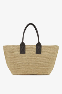 This Brown Medium Easy Shopper features top handles, one compartment and a pocket detail. DETAILS - 100% raffia. Learn more about our materials - Lining composition: 65% recycled cotton, 35% cotton - Top handles - One compartment Made in: China Product ID: A6823 SIZE & FIT - Height: 28.5 - Width: 33 - Depth: 18