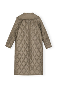 This Brown Shiny Quilt Coat is made from recycled nylon. The coat is designed for a relaxed fit and features an oversized collar, asymmetrical button closure and side pockets. DETAILS - 100% recycled polyamide. Learn more about our materials - Lining composition: 100% Recycled Polyester - Oversized collar - Asymmetrical button closure - Side pockets Made in: China Product ID: F8577 SIZE & FIT - Designed for a relaxed fit - Take your normal size to achieve the model's look, those in between sizes or with a smaller frame might consider taking a size down - Ripstop tech fabric, quilted with subtle padding - Mona is 5’9” and wears a size US 4