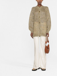 brushed-effect crew-neck cardigan Highlights - Light green - Mohair-wool blend - Brushed effect - Ribbed-knit edge - Crew neck - Front button fastening - Long sleeves - Straight hem Imported Composition Mohair 70%, Polyamide 25%, Wool 5% SIZE & FIT Model measurements Height 5 ft 10 in(1.77 m) Bust/Chest 31.49 in(80 cm) Hips 33.85 in(86 cm) Waist 22.44 in(57 cm) FittingInformation This piece fits true to size. We recommend you get your regular size Cut for a loose fit Made with a mid-weight fabric Washing instructions Hand Wash